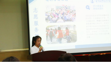 最后陈子涵老师对此次述职大会进行点评,她回顾了一年内自己与两委大家庭的成长,提出了对于学生工作的两点感悟。第一点,学生工作就是大学生活里的一个低成本的角色扮演。有同学做策划、做宣传、做财务,这些工作其实都是未来工作的一个缩影。第二点,学生工作就像一个调味瓶。你可以选择做学生工作,也可以选择不做,承担了一定的学生工作,就要承担一定的责任,要做好学生工作与学习时间的合理安排。同时陈子涵老师希望第十八届团委学生会成员把金色梦想传承下去,要常怀感恩之心,要以心平气和的待人处事态度去做学生工作。