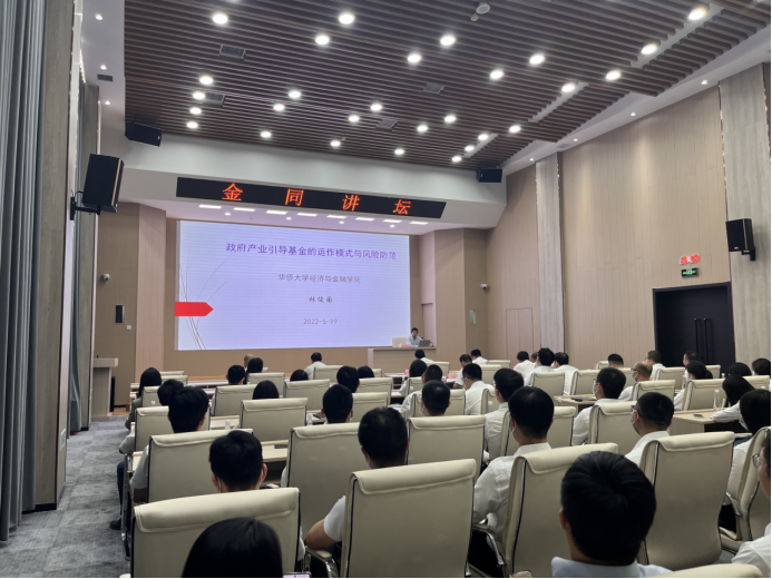签约仪式后,林俊国教授作题为《政府产业引导基金的运作模式与风险防范》的报告,为在场来宾开展金同讲坛演讲。