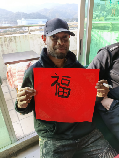 新年联欢会主要设有共写春联、趣猜谜语、乐享饺子三项活动。联欢会上,老师与同学们积极发散思维、开动大脑,联欢会现场气氛热烈。一点燃经厝,一横延祝福,来自所罗门群岛的留学生苏北同学用一张“福”传递虎年的祝福;一张饺子皮,一点鲜肉馅,两边一捏,叠出新年的虎虎生威,叠出新春的双倍好运。
