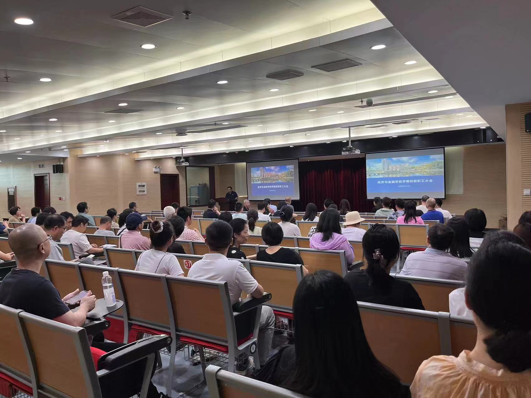 学期初教职工大会在经管十二楼多功能厅召开。