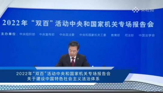 为深入学习宣传贯彻习近平法治思想,深入了解建设中国特色社会主义法治体系,中央组织部、中央宣传部等单位举办了2022年“百名法学家百场报告会”宣讲活动中央和国家机关专场报告会,报告会由中国法学会党组书记、常务副会长、习近平法治思想研究中心主任陈训秋主持,由中国法学会副会长、全国人大监察和司法委员会副主任委员徐品明担任主讲人。报告会通过央视频APP“央视社会与法”账号面向全国直播。亚洲博彩平台排名
